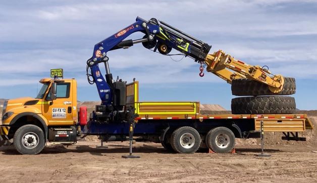 The TH10C Tire Handler allows the handling of a wide range of tires used on medium to heavy equipment, suitable for both maintenance tasks and storage operations.